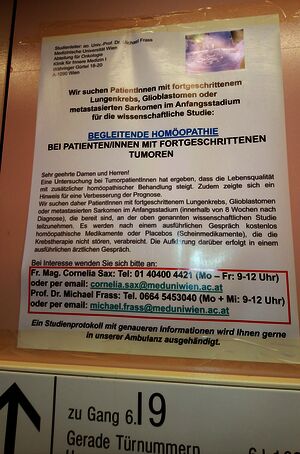 In June 2021, we published a critique on our website, the INH website, and Edzard Ernst's website, written in collaboration with the German INH (Information Network Homeopathy), of a study claiming that homeopathy can improve the quality of life and survival of lung cancer patients with NSCLC (non-small cell lung cancer) in advanced stages. Some of the many authors of the study are employees of MeduniWien. We forwarded this critique to the rectorate and ethics committee of MedUni Vienna and to all authors of the study. We sent a letter to the editor of The Oncologist criticizing the study and recommending that it be retracted.