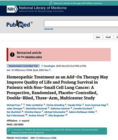 Homöopathie bei Lungenkrebs - 5 Jahre nach der Publikation der Studie wurde sie vom Journal "The Oncologist" endlich zurückgezogen